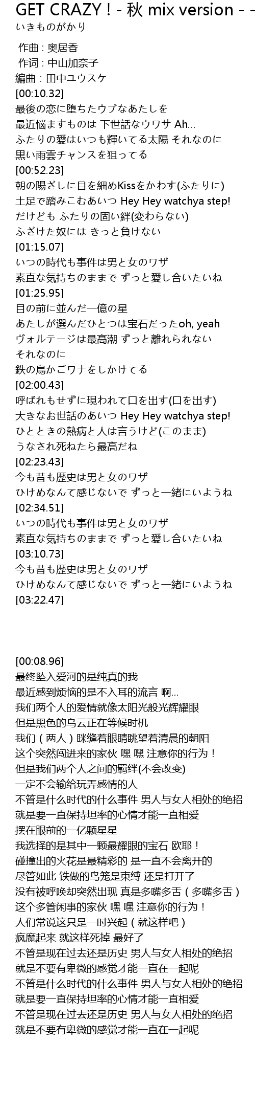 | [00:01.00] | 作词 : 中山加奈子 |