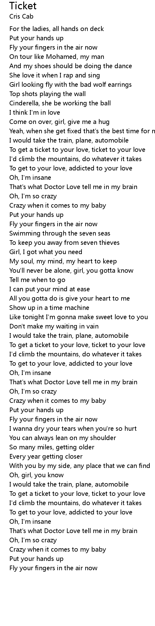 To get a ticket to your love, ticket to your love |