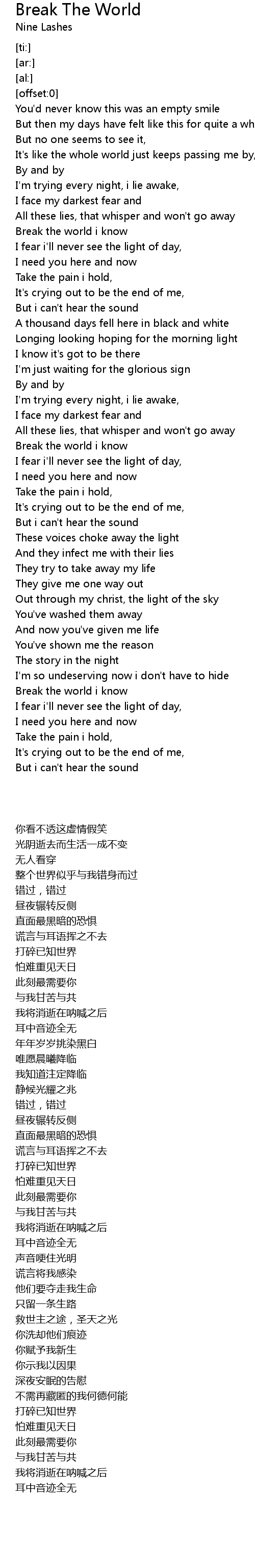 Break the world i know |