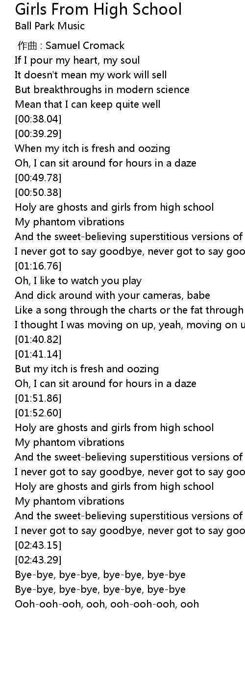 | [02:18.26] | Holy are ghosts and girls from high school |