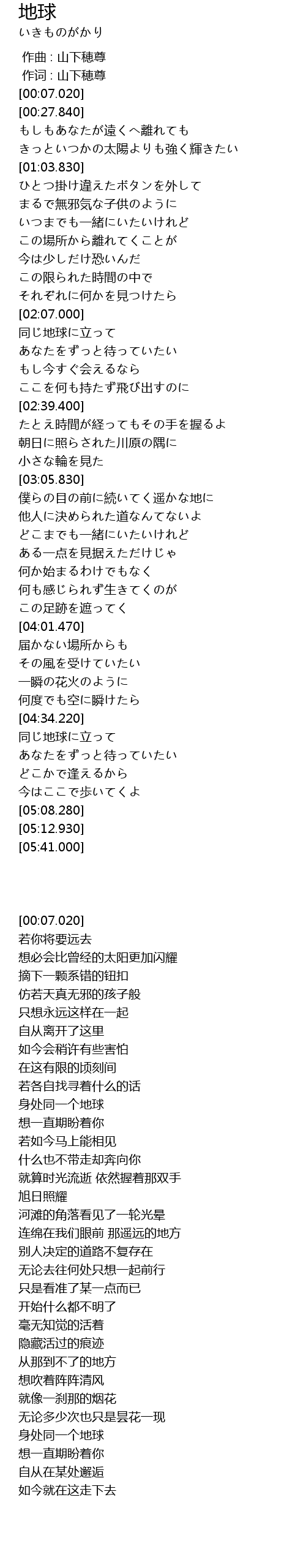 | [00:01.00] | 作词 : 山下穂尊 |