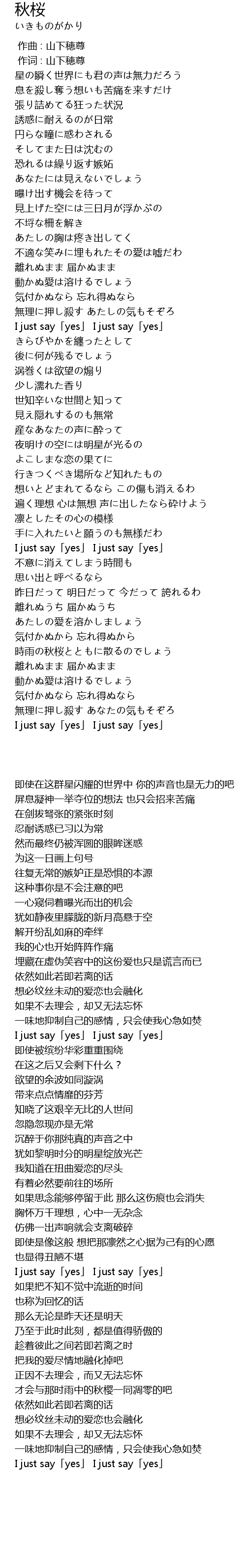 | [04:30.66] | I just say「yes」 I just say「yes」 |