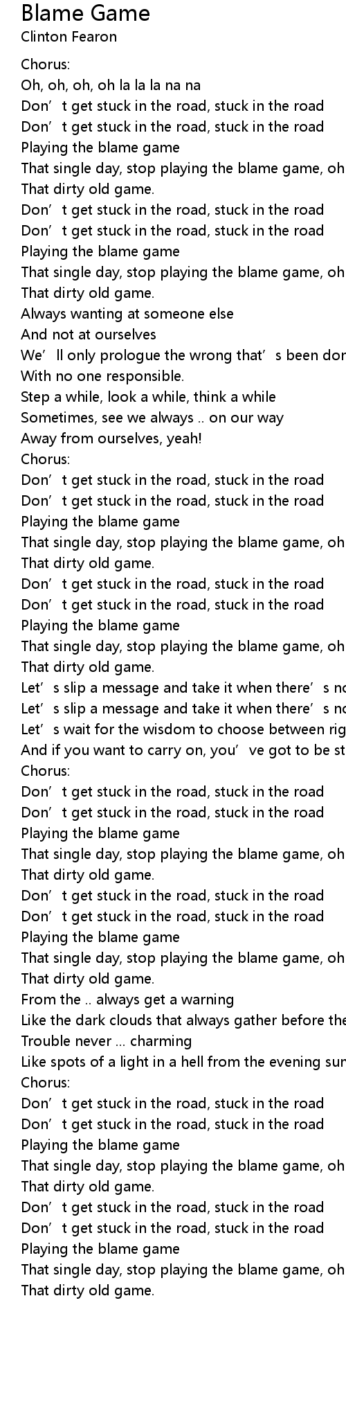 | That single day, stop playing the blame game, oh | |