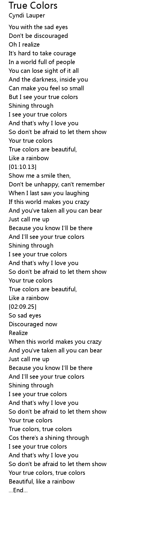 Your true colors, true colors |