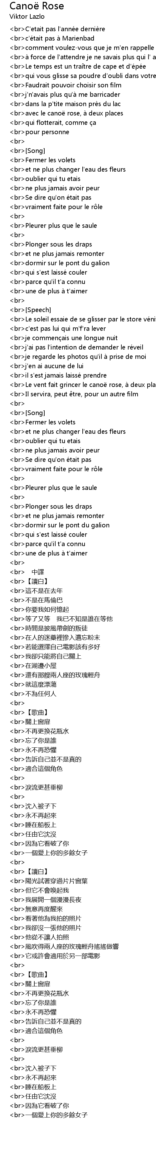 | br Le vent fait grincer le cano rose, à deux places | |