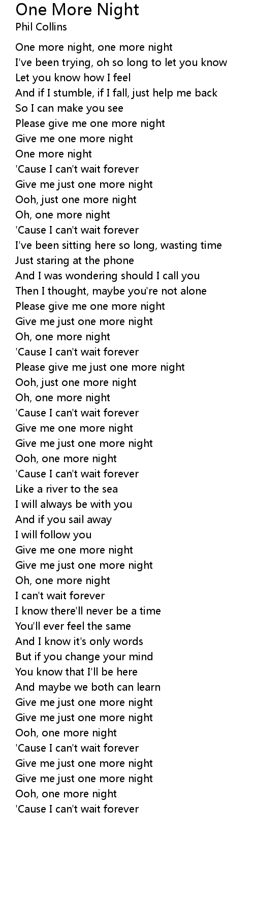 One more night, one more night |