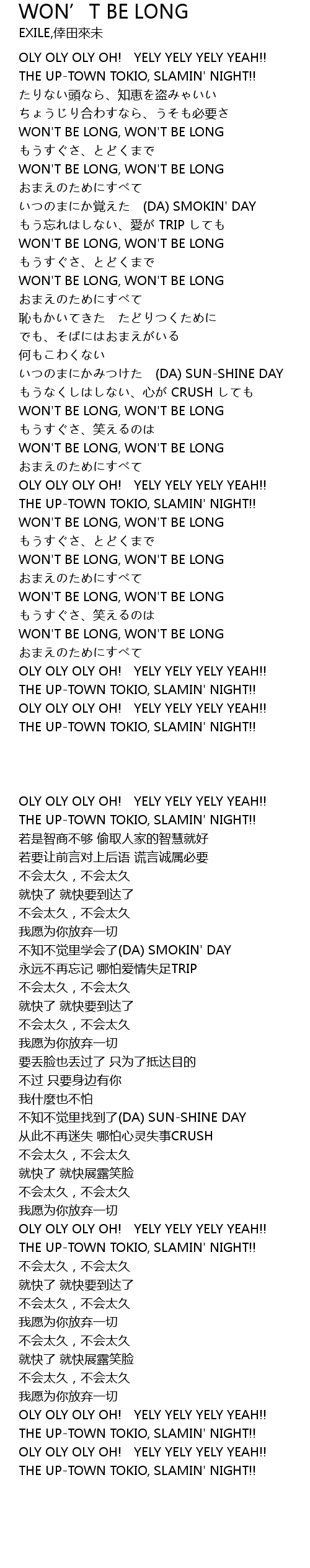 | [03:54.30] | WON'T BE LONG, WON'T BE LONG |