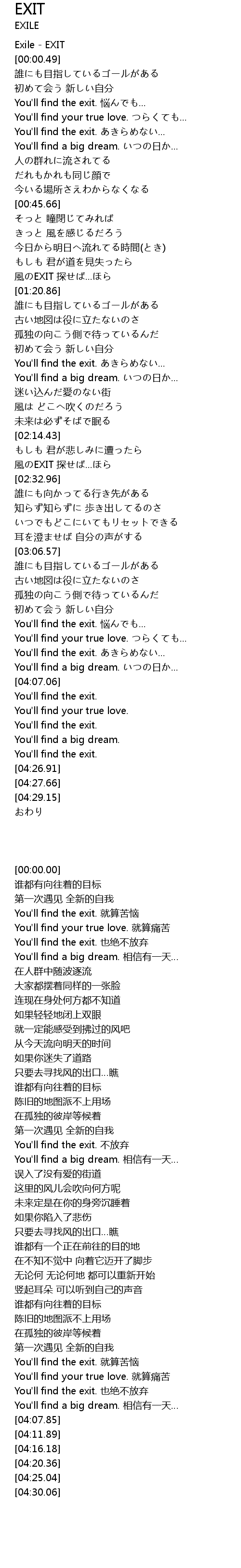 | [00:00.00] | Exile - EXIT |
