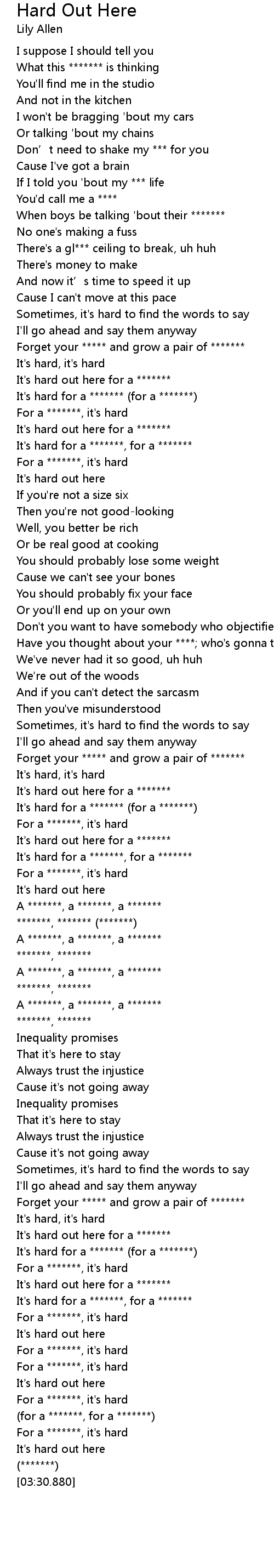 | [01:04.460] | It's hard for a *******, for a ******* |