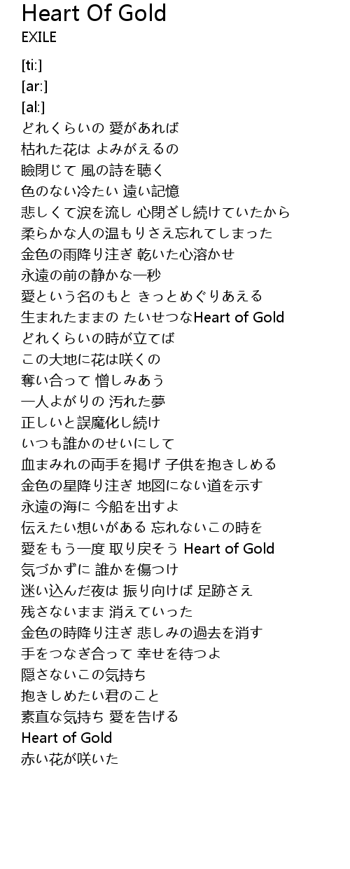 | [01:45.88] | 生まれたままの たいせつなHeart of Gold |
