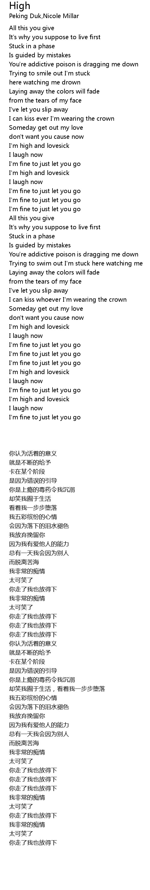 I'm high and lovesick |