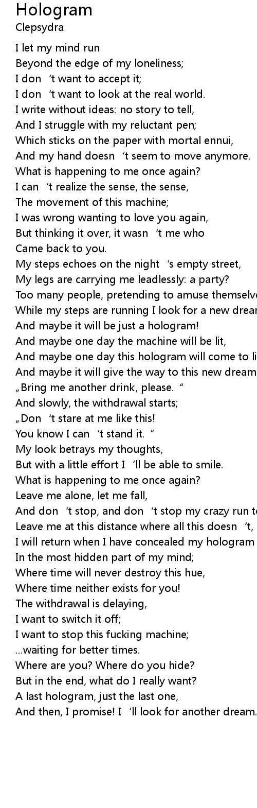 | A last hologram, just the last one, | |