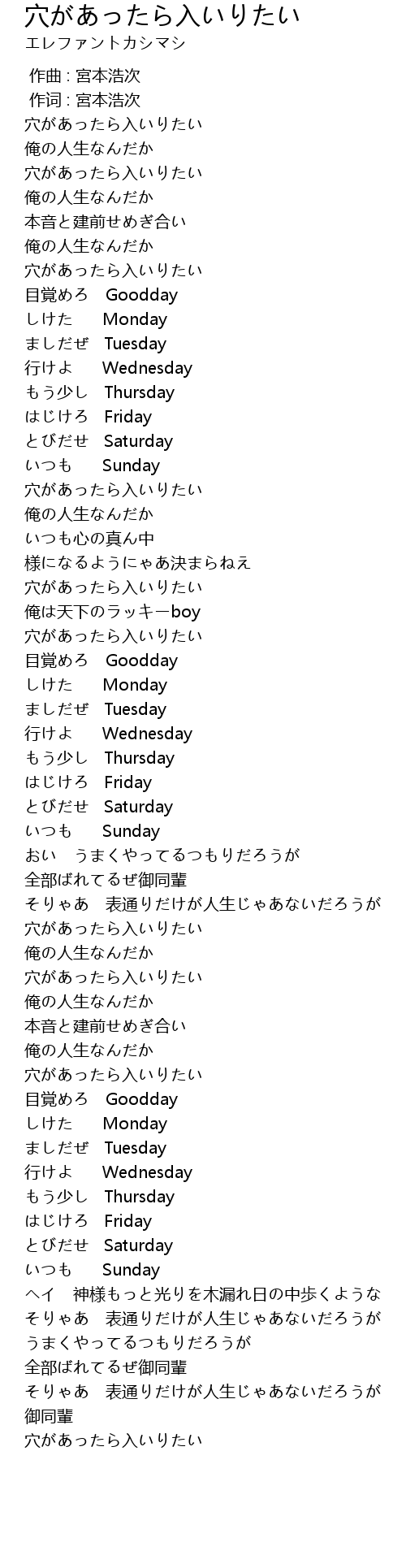 | Song | 穴があったら入いりたい |