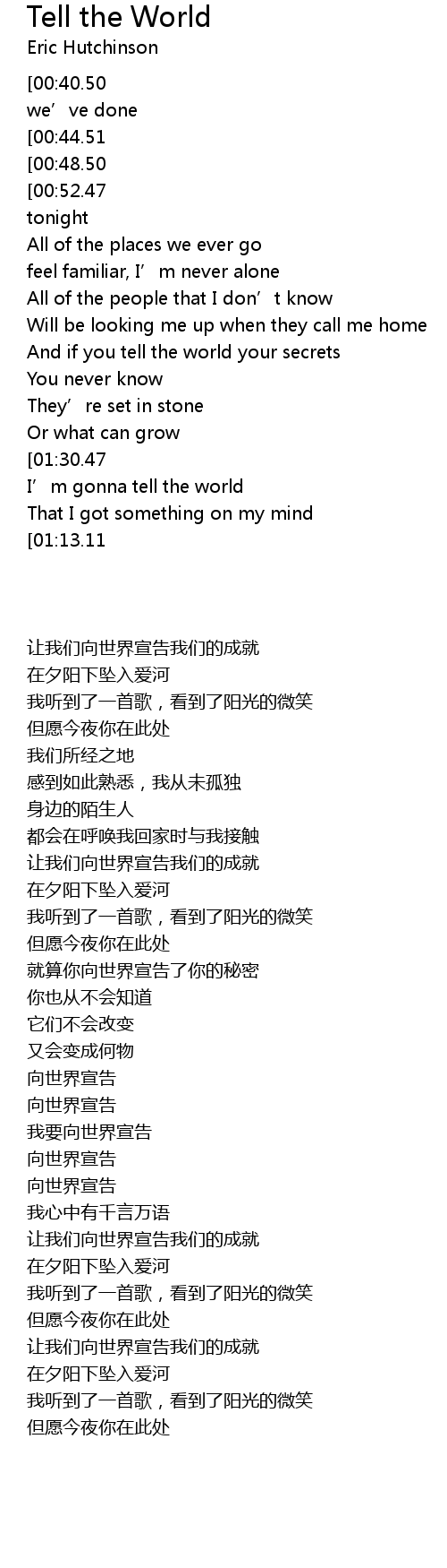 | [01:28.56][01:30.47][01:36.48][01:38.44] | Tell the world |