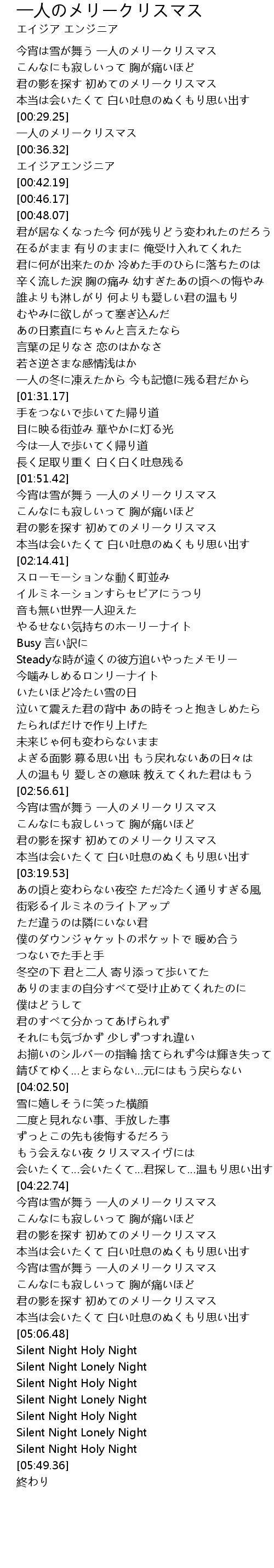 | [04:33.46] | 君の影を探す 初めてのメリークリスマス |
