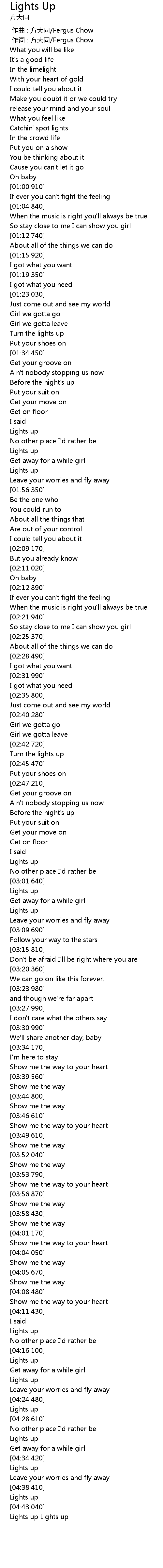 | [00:01.00] | zuò cí : fāng dà tóng Fergus Chow |