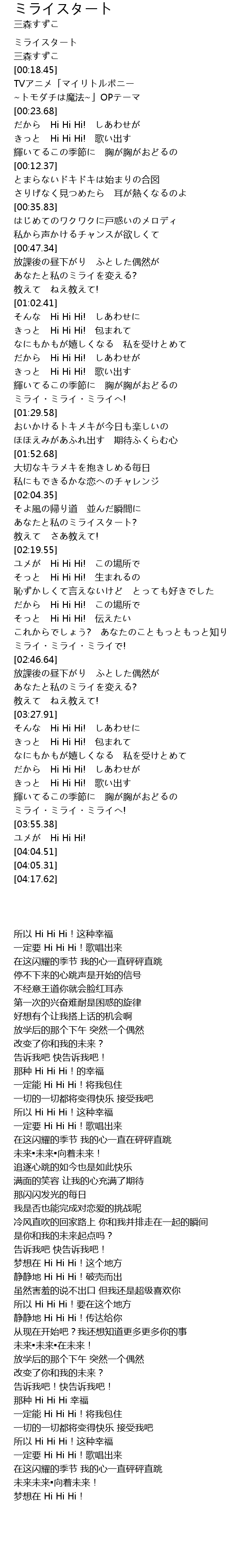 | [00:19.28] | TVアニメ「マイリトルポニー ~トモダチは魔法~」OPテーマ |