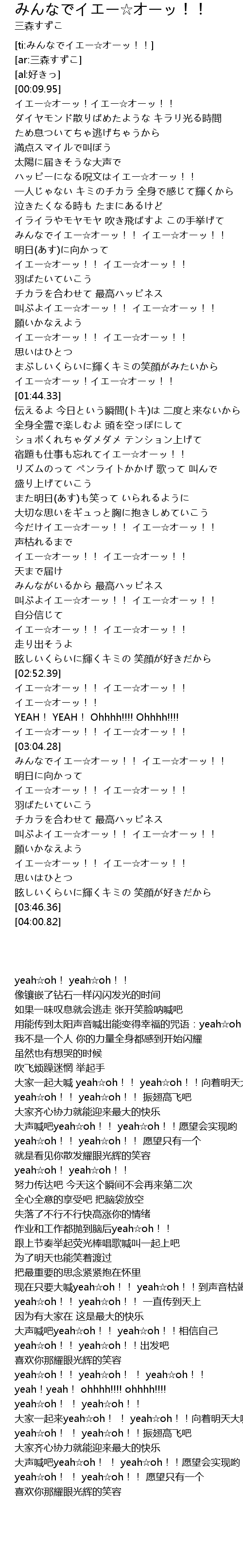 | [ti:みんなでイエー☆オーッ!!] | |