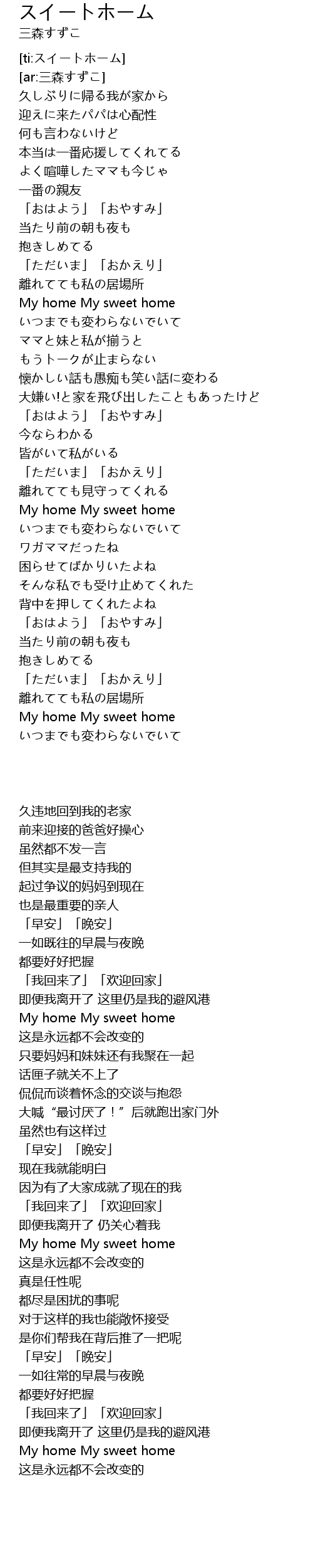 | [03:19.38] | My home My sweet home |