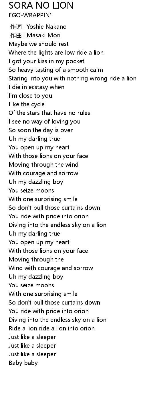 | [03:36.54] | Ride a lion ride a lion into orion |