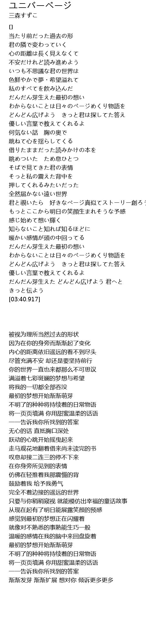 | [03:04.546] | わからないことは日々のページめくり物語を |