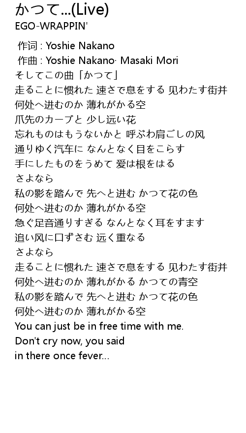 | [00:00.000] | 作词 : Yoshie Nakano |