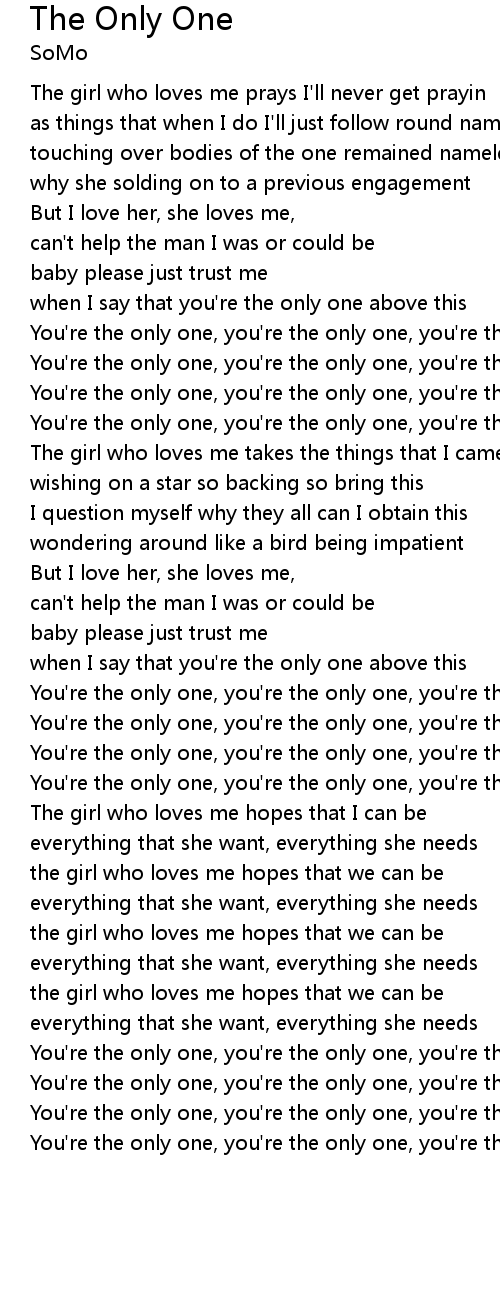 | [01:44.25] | You're the only one, you're the only one, you're the only one for me |