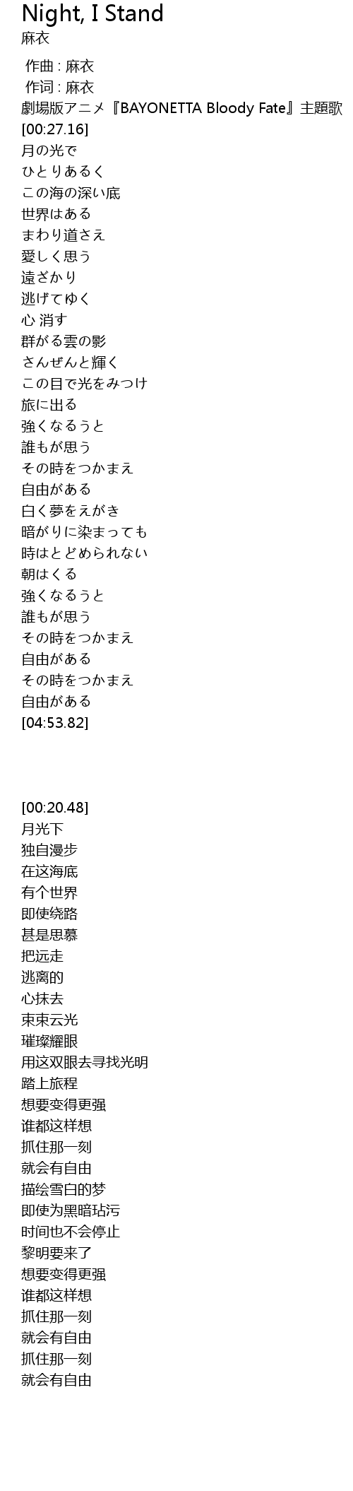 | [00:20.48] | 劇場版アニメ『BAYONETTA Bloody Fate』主題歌 |