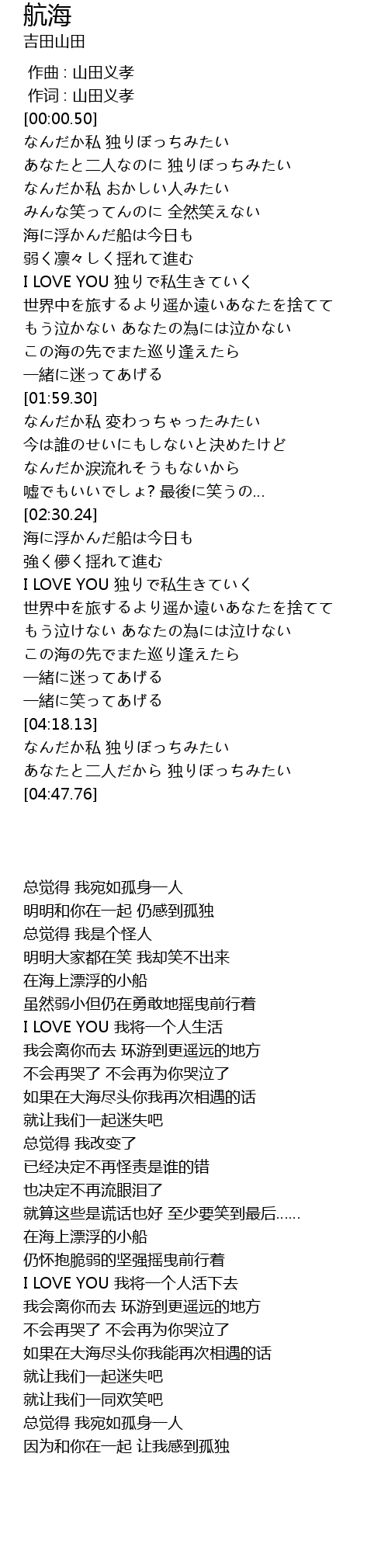 | [03:00.49] | 海に浮かんだ船は今日も |