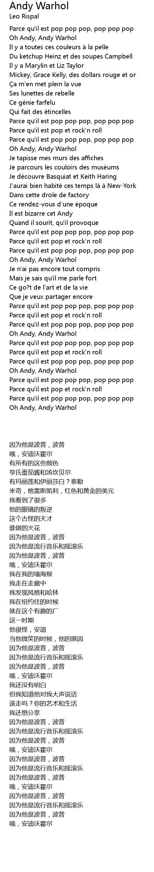 | [02:31.83] | Oh Andy, Andy Warhol |