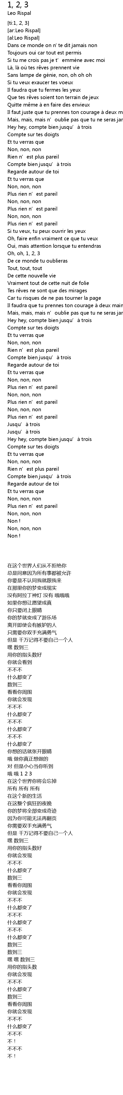 | [00:44.73] | Hey hey, compte bien jusqu'a trois |