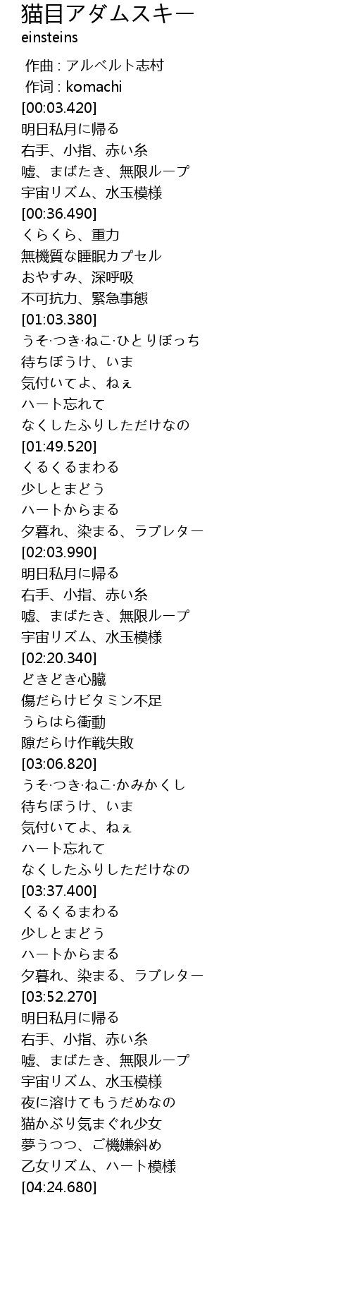 | [04:01.650] | 嘘、まばたき、無限ループ |