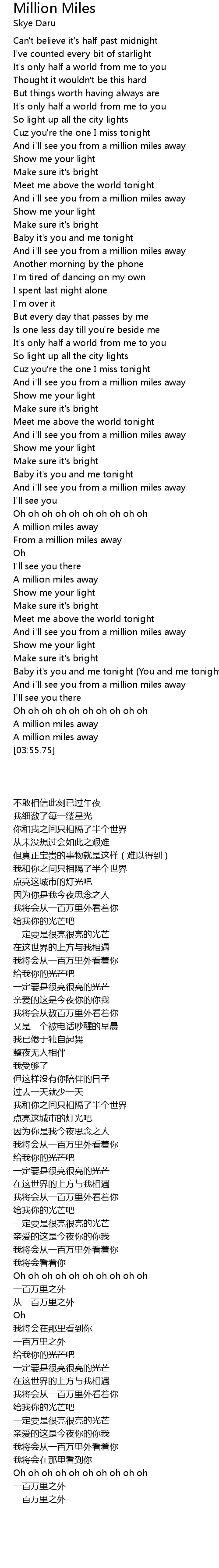 | [03:16.01] | And i'll see you from a million miles away |
