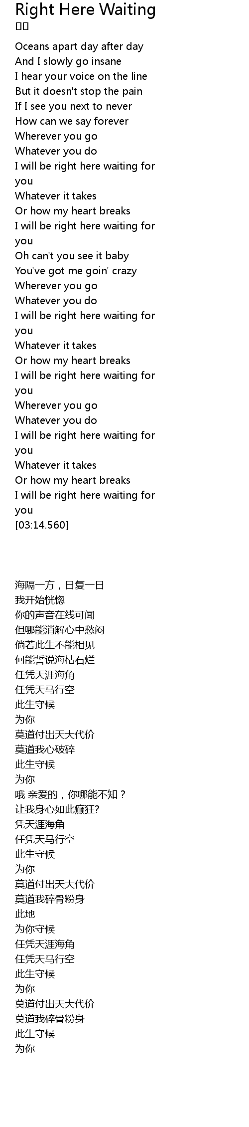 I will be right here waiting for |