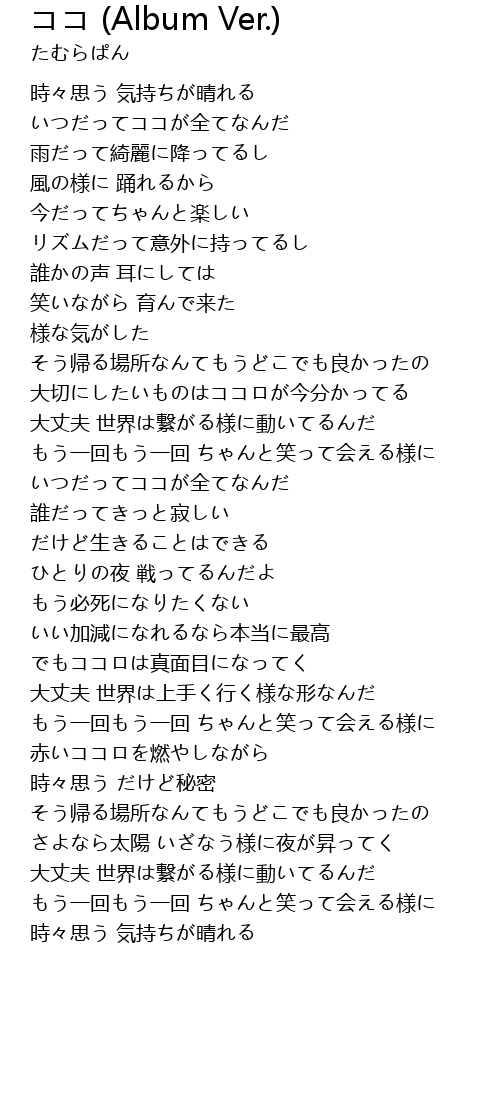 | Song | ココ (Album Ver.) |