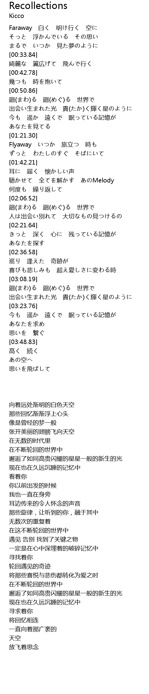 | [03:24.64] | 今も 遥か 遠くで 眠っている記憶が |