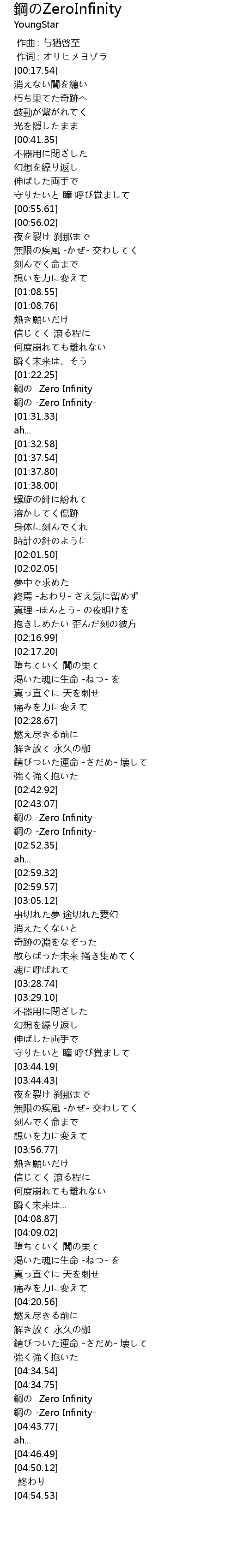 | [02:43.22] | 鋼の -Zero Infinity- |