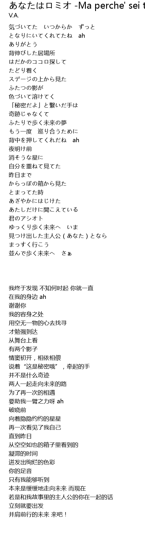 | Song | あなたはロミオ -Ma perche' sei tu Romeo- |