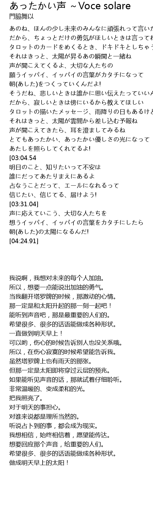 | [04:17.74] | 朝(あした)の太陽になるんだ! |