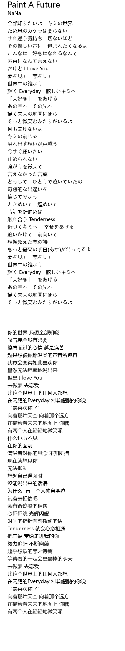| [00:16.80] | 全部知りたいよ キミの世界 |