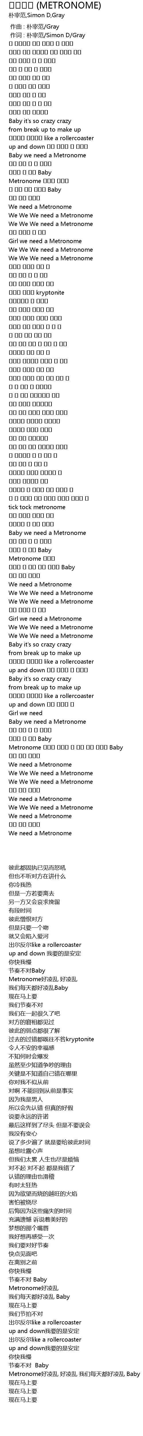 | [03:30.800] | Metronome 엇갈려 엇갈려 왜 우린 맨날 엇갈려 Baby |