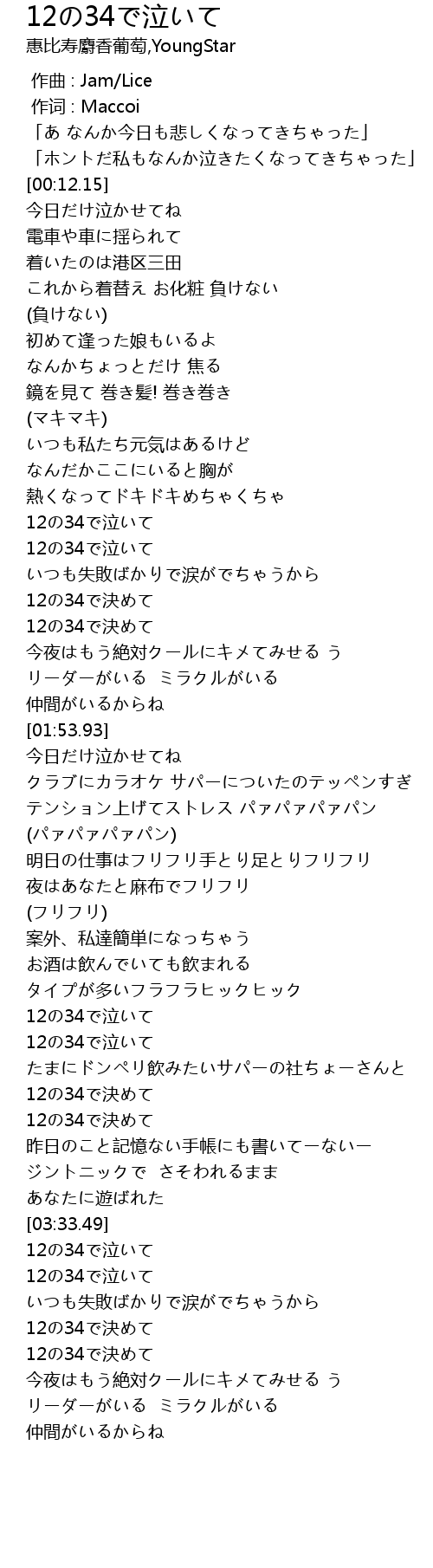 | [03:37.75] | 12の34で泣いて |