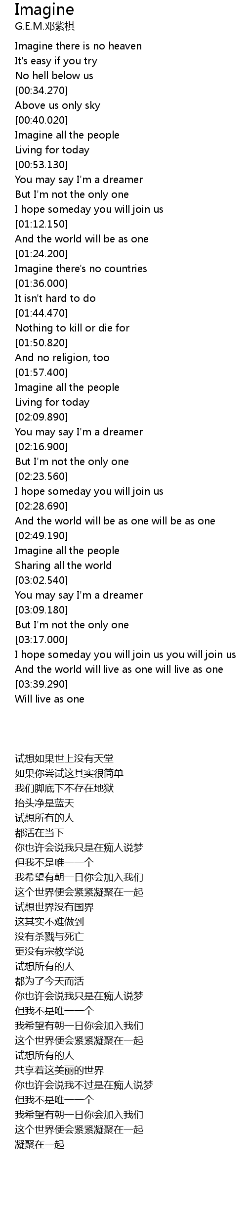 And the world will live as one will live as one |