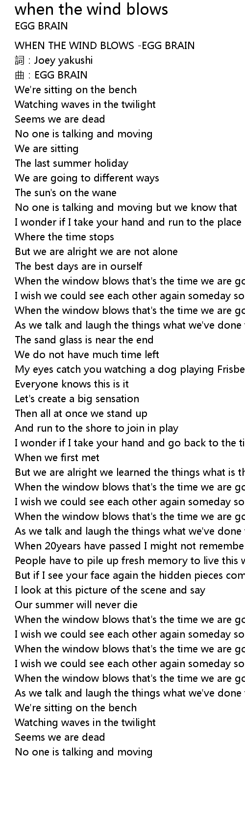 | [00:01.01] | WHEN THE WIND BLOWS -EGG BRAIN |