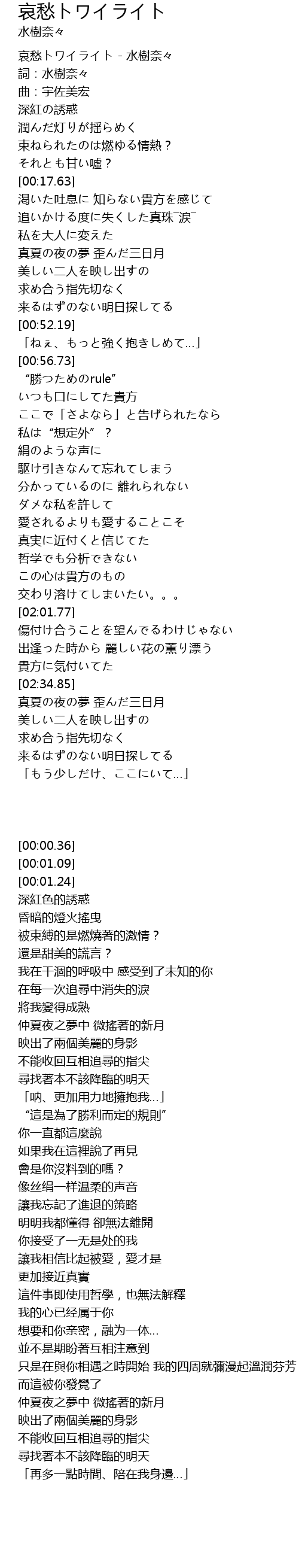 | [00:00.36] | 哀愁トワイライト - 水樹奈々 |