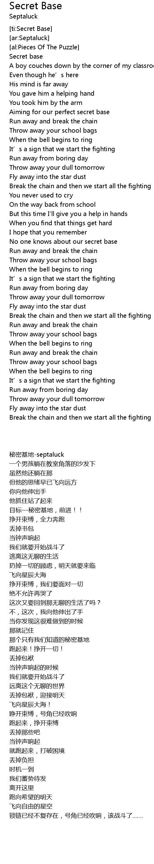 | [01:00.12] | Break the chain and then we start all the fighting |