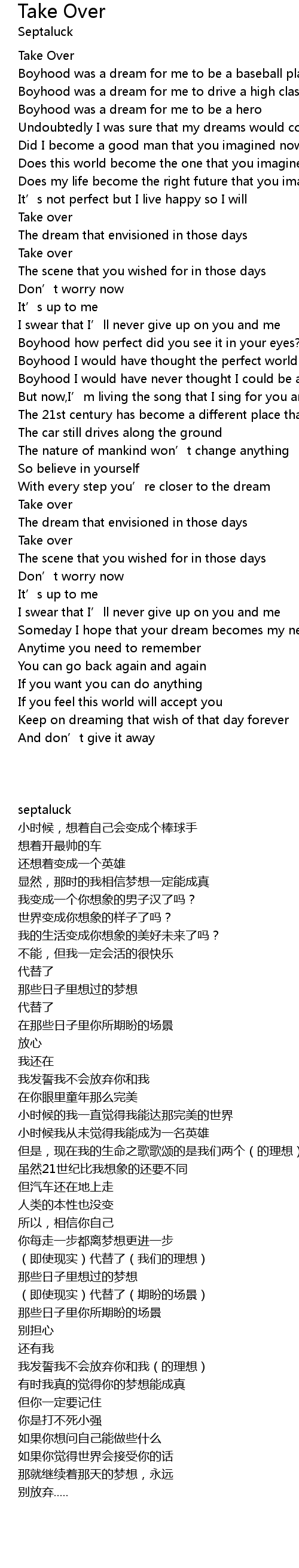 | [01:11.810] | Undoubtedly I was sure that my dreams would come true |