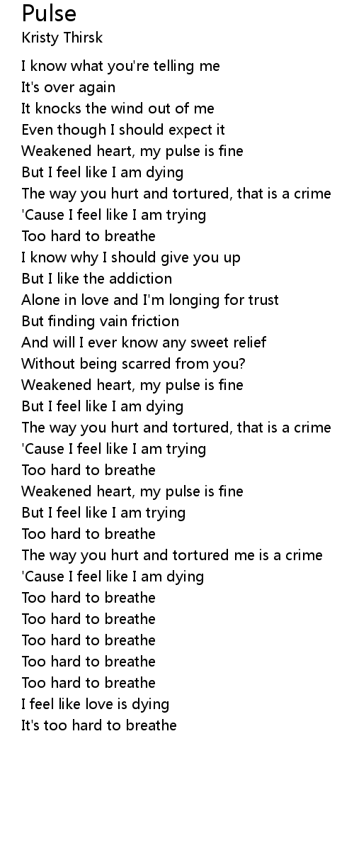 Weakened heart, my pulse is fine |
