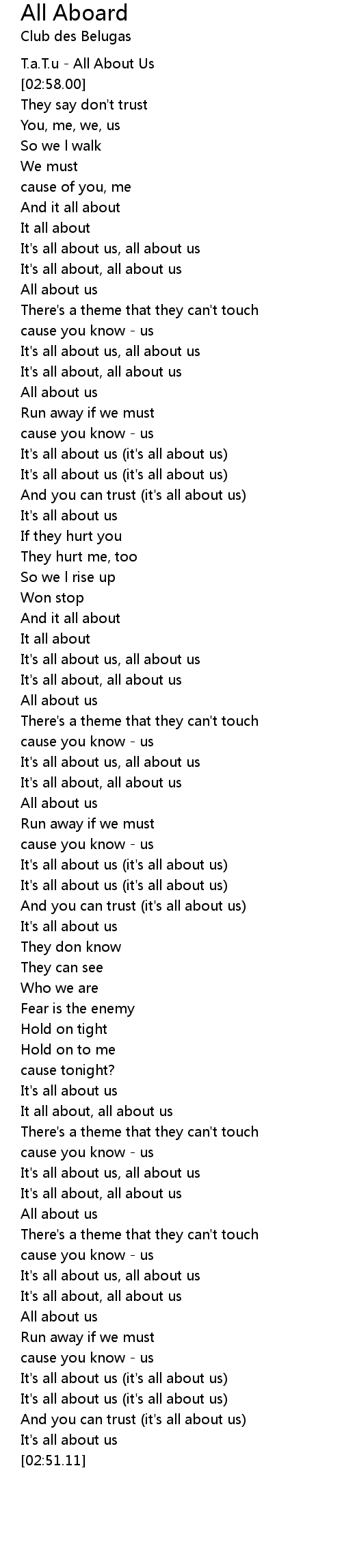 It all about, all about us |