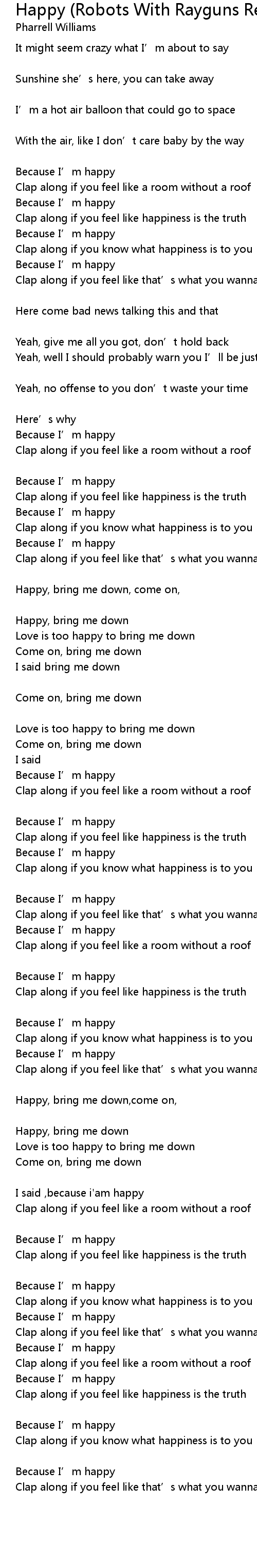| Clap along if you feel like happiness is the truth | |